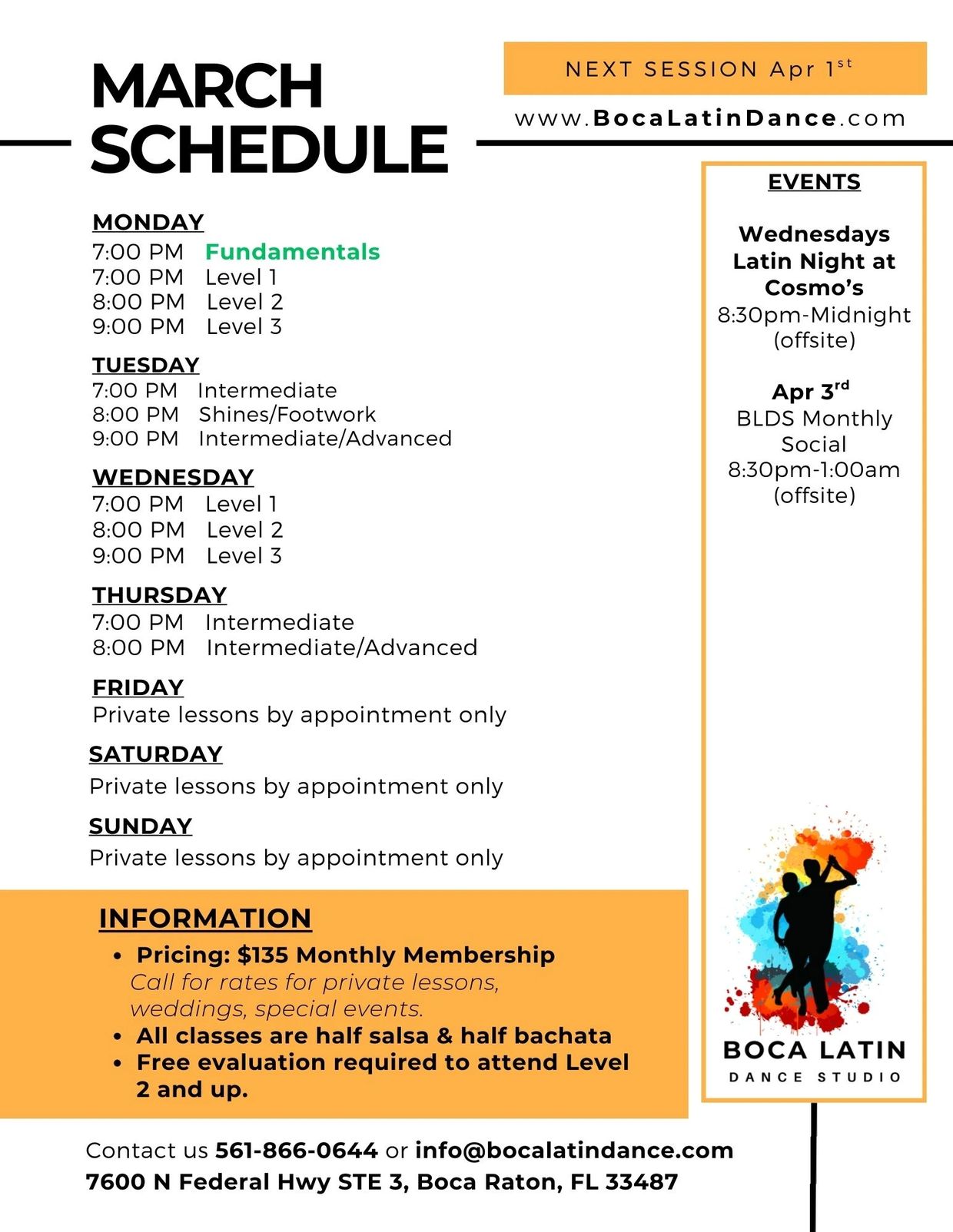 Click the button below or email us at info@bocalatindance.com